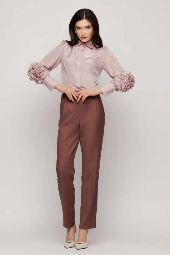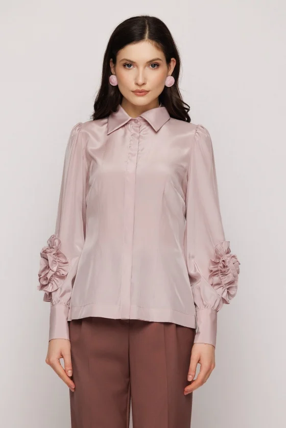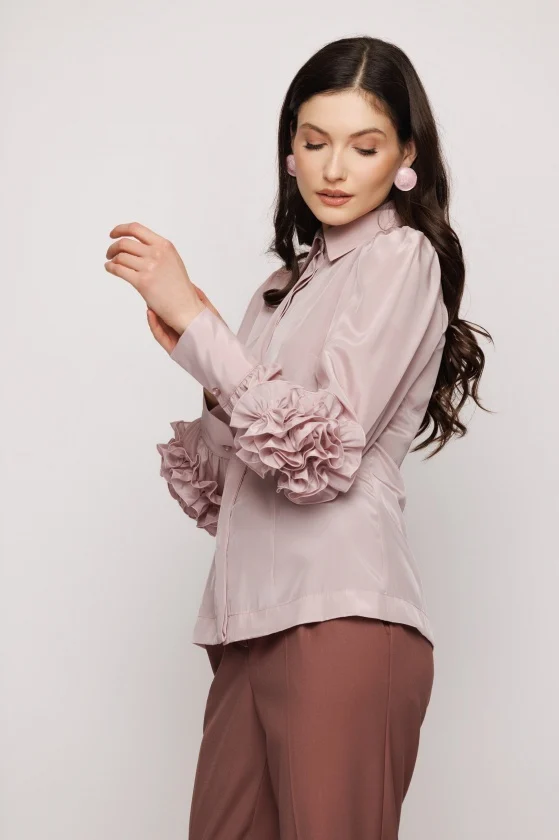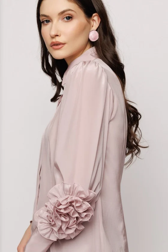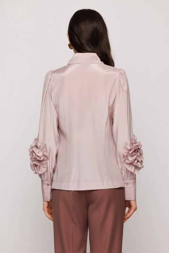 Bluza lejera din tesatura uni, cu guler si accesoriu decorativ la maneci.