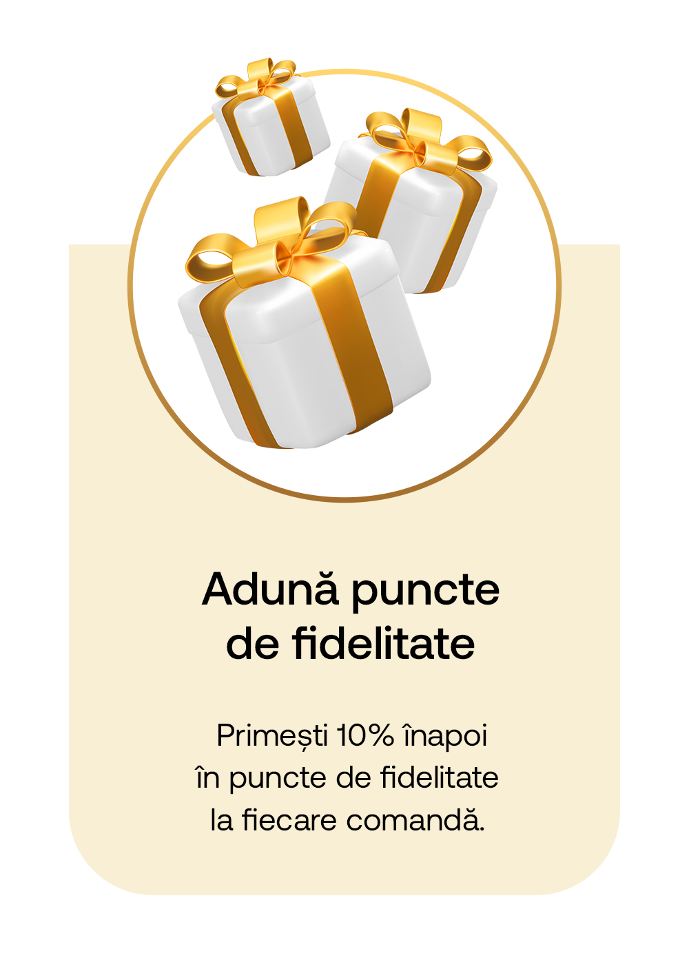 La fiecare comandă, indiferent de valoarea ei, vei primi puncte de fidelitate în valoare de 10%.