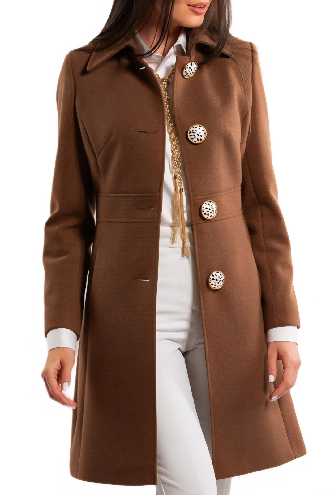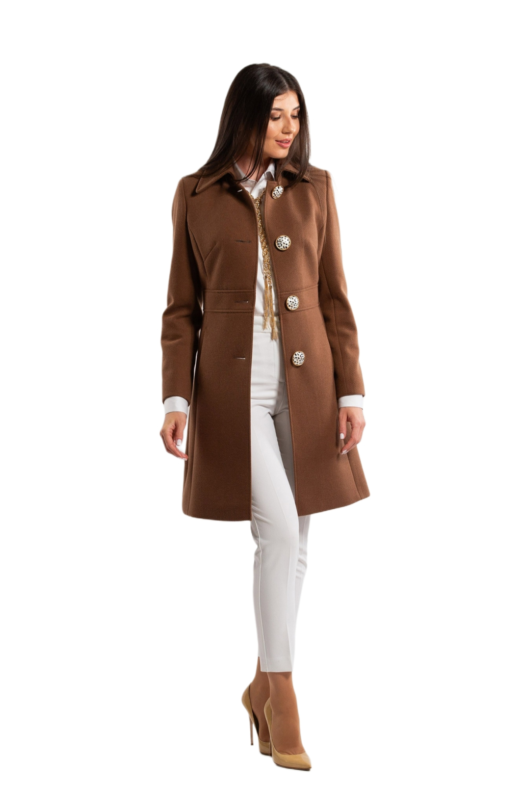 Paltonul maro 3/4 Sentierri este alegerea ideală pentru un sezon rece elegant și confortabil. Realizat dintr-o stofă calitativă, cu o textură rafinată, acest model impresionează prin atenția la detalii și linia feminină. Talia marcată pune în valoare silueta, iar nasturii imprimați adaugă o notă de stil discret și sofisticat. Interiorul este vatuit cu tehnologia Valtherm, asigurând o izolație termică excelentă fără a compromite lejeritatea. Un palton care îmbină perfect eleganța urbană cu confortul modern — semnătura inconfundabilă Sentierri.