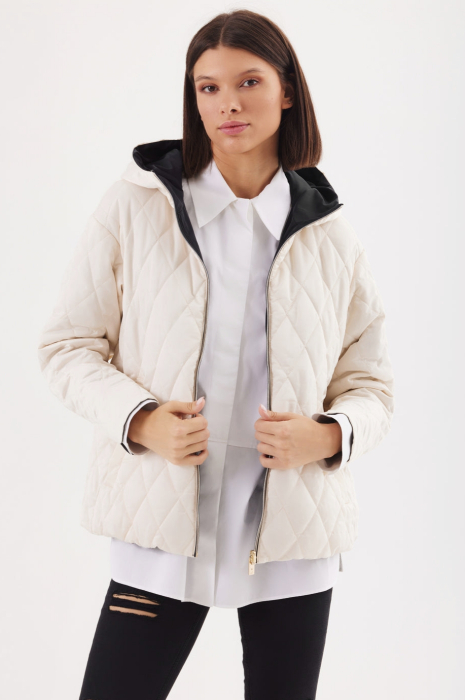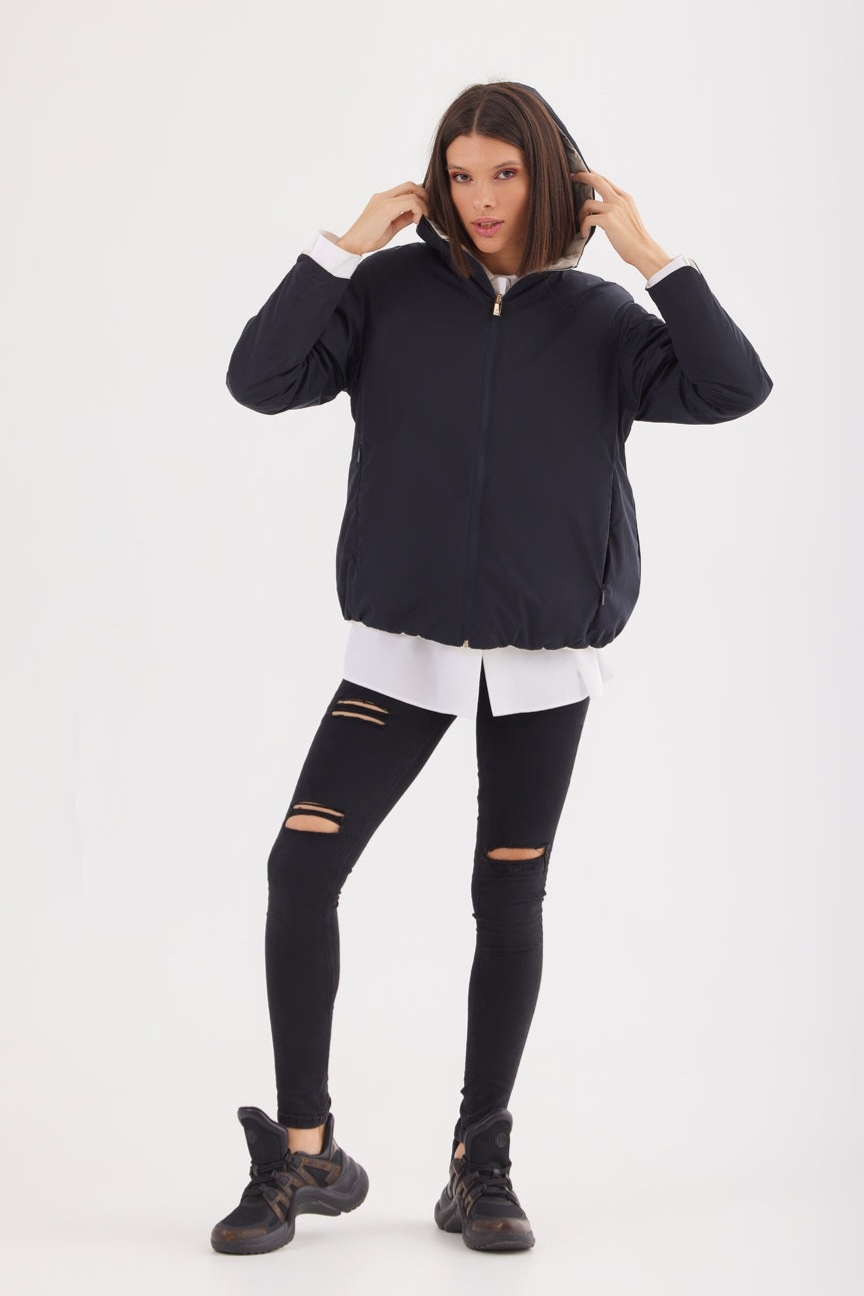 Geacă reversibilă de primăvară/toamnă, practică și versatilă, perfectă pentru un stil casual-sport. Modelul poate fi purtat pe ambele fețe: o parte neagră, clasică și ușor de asortat, iar cealaltă într-o nuanță elegantă de bej, oferindu-ți două variante de styling într-o singură piesă vestimentară.
