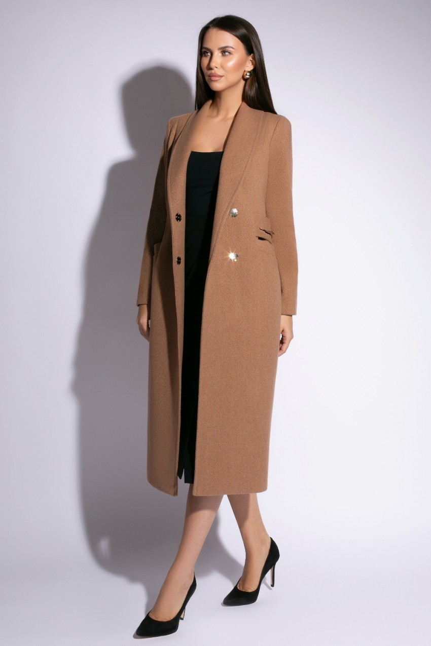 Palton elegant din stofa calitativa, cu guler sal si croi cambrat. Inchidere in fata cu capsa. Dispune de accesoriu auriu si buzunare functionale. Captuseala satinata cu matlasare pe zona spatelui pentru un plus de confort termic.